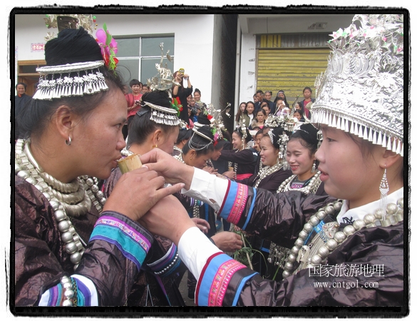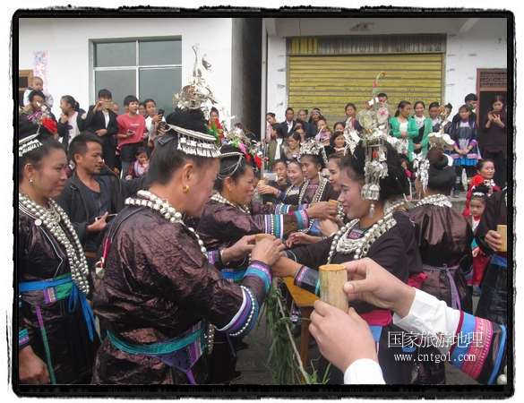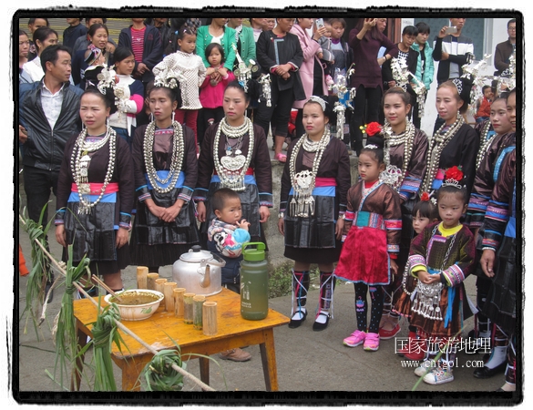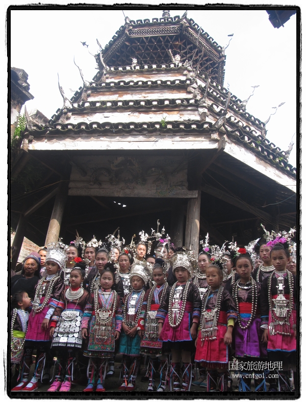 国家旅游地理 贵州黔东南11月14日讯(云贵旅游地理通讯员 石宏辉摄影报道)近日,位于黔东南从江县的谷坪乡帮土侗寨迎来五年一度的“铜鼓”赶歌会;帮土侗寨属谷坪乡东北部紧接黎平县双江镇的一个偏远山村,全村五百户人家;随着两高的通车使原来的村容发生很大变化,村里吊脚楼、鼓楼等建筑保存完好;村民对传统节日非常重视;每逢佳节,全村男女老少都会穿着盛装集中寨门和鼓楼为节日准备。